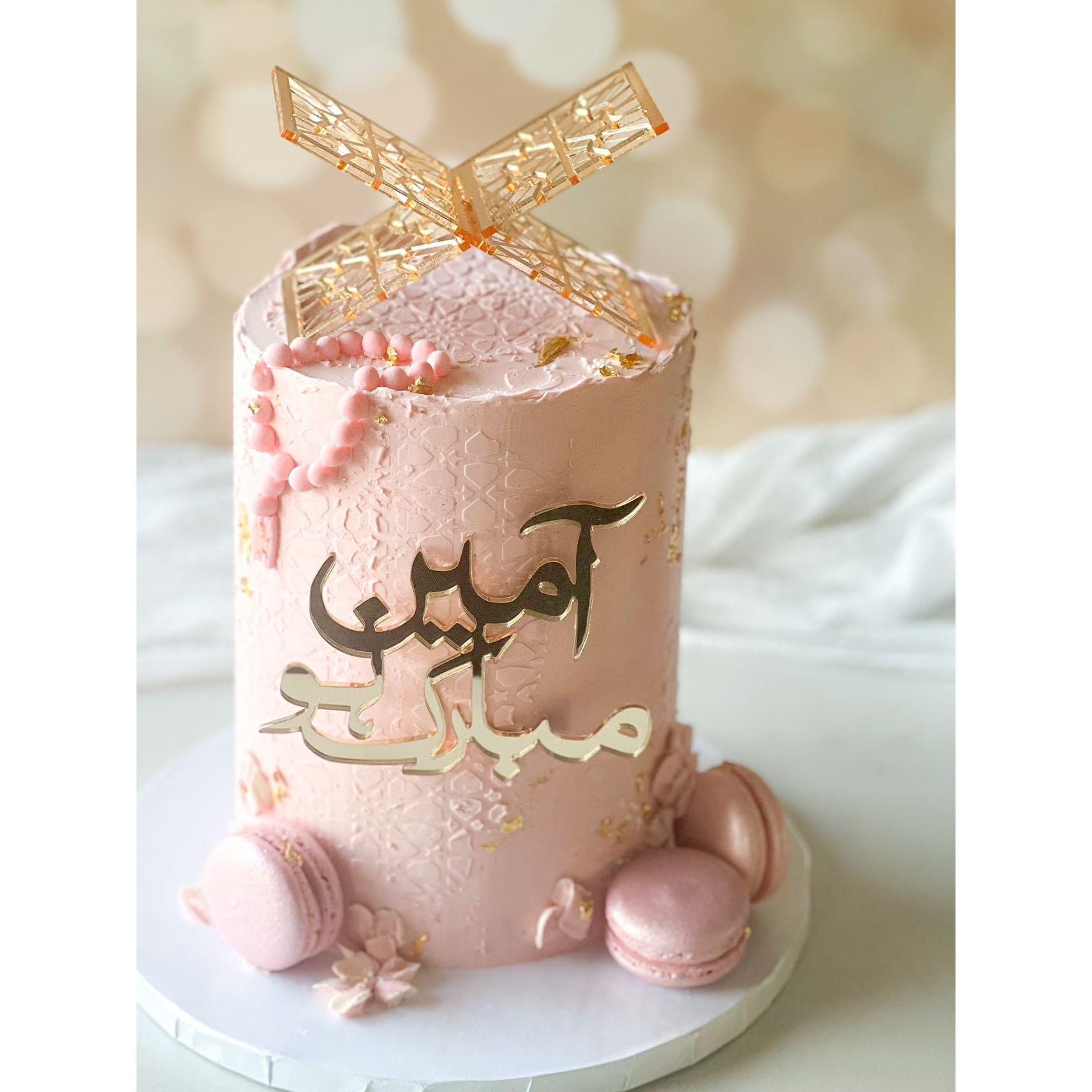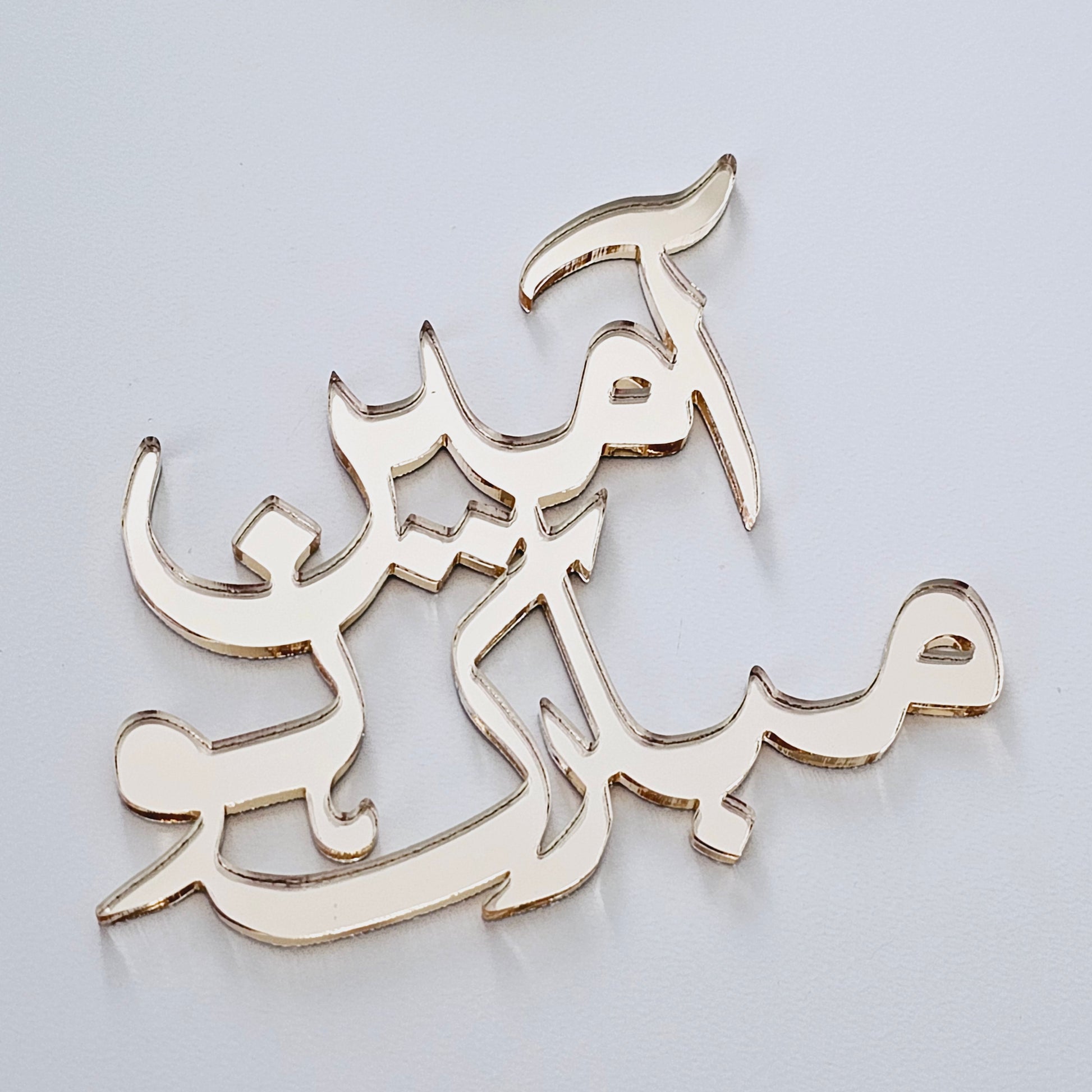 Enhance your special celebration with our Ameen Mubarak Arabic Cake Charm. Made with high-quality acrylic, the front can be selected in your preferred color while the back boasts a light gray finish. With 3 sizes and 3 colors to choose from, this charm is the perfect final touch for your cake.