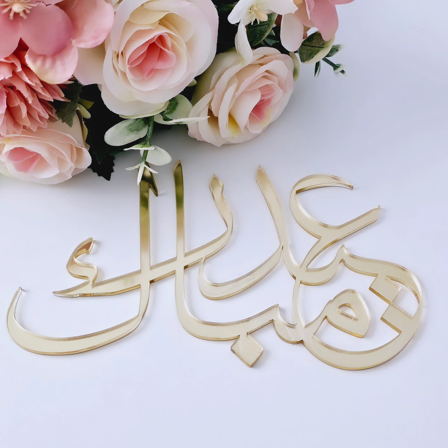 Add a festive touch to your Eid celebrations with our Arabic Eid Mubarak Cake Charm. This charming decoration is perfect for sheet cakes and is available in 3 colors. Measuring 7 x 4 inches, it's the perfect size to make a statement at your next celebration. Bring joy to your guests with this unique cake charm.