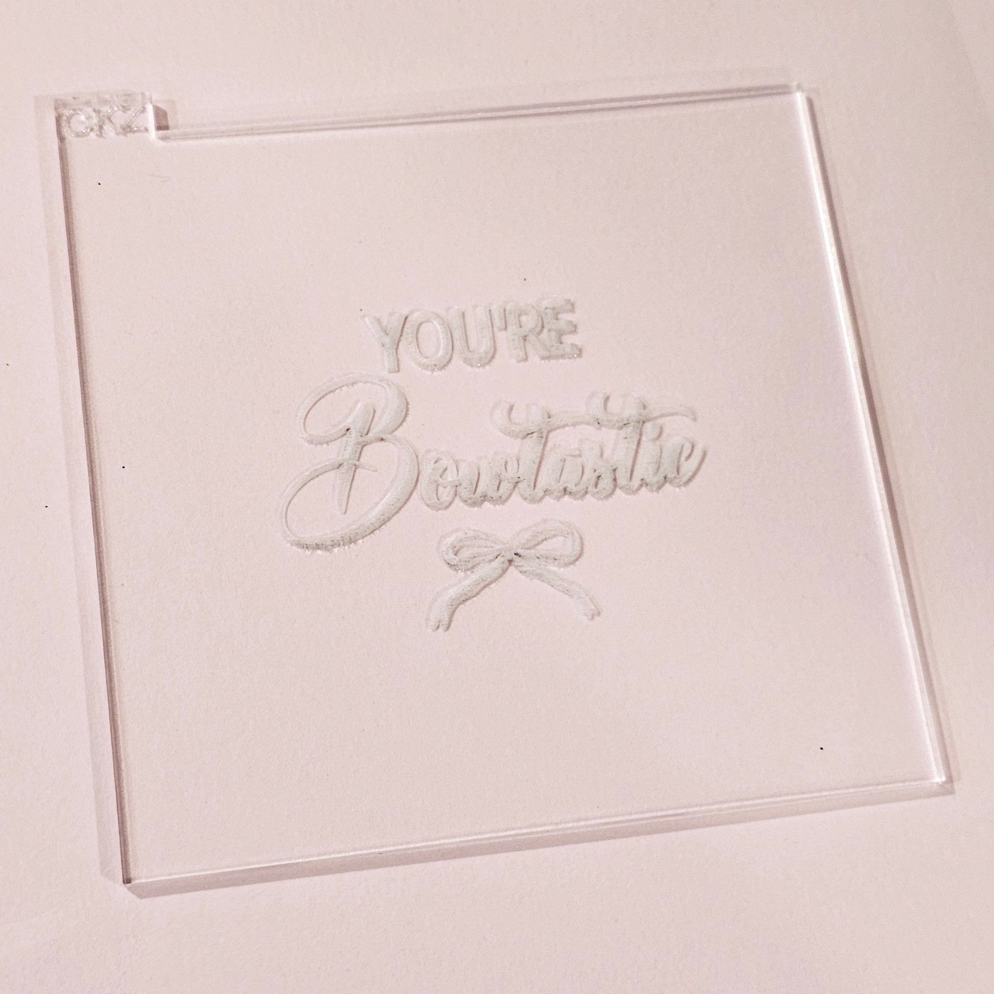 Create delightful treats with a touch of personalized flair. This stamp adds a charming message to your baked goods. Perfect for cookies or cupcakes, it's a great way to express your creativity. The stamp's design is sized just right for both treats, ensuring a clear impression. Enjoy adding this "bowtastic" touch to your culinary creations.