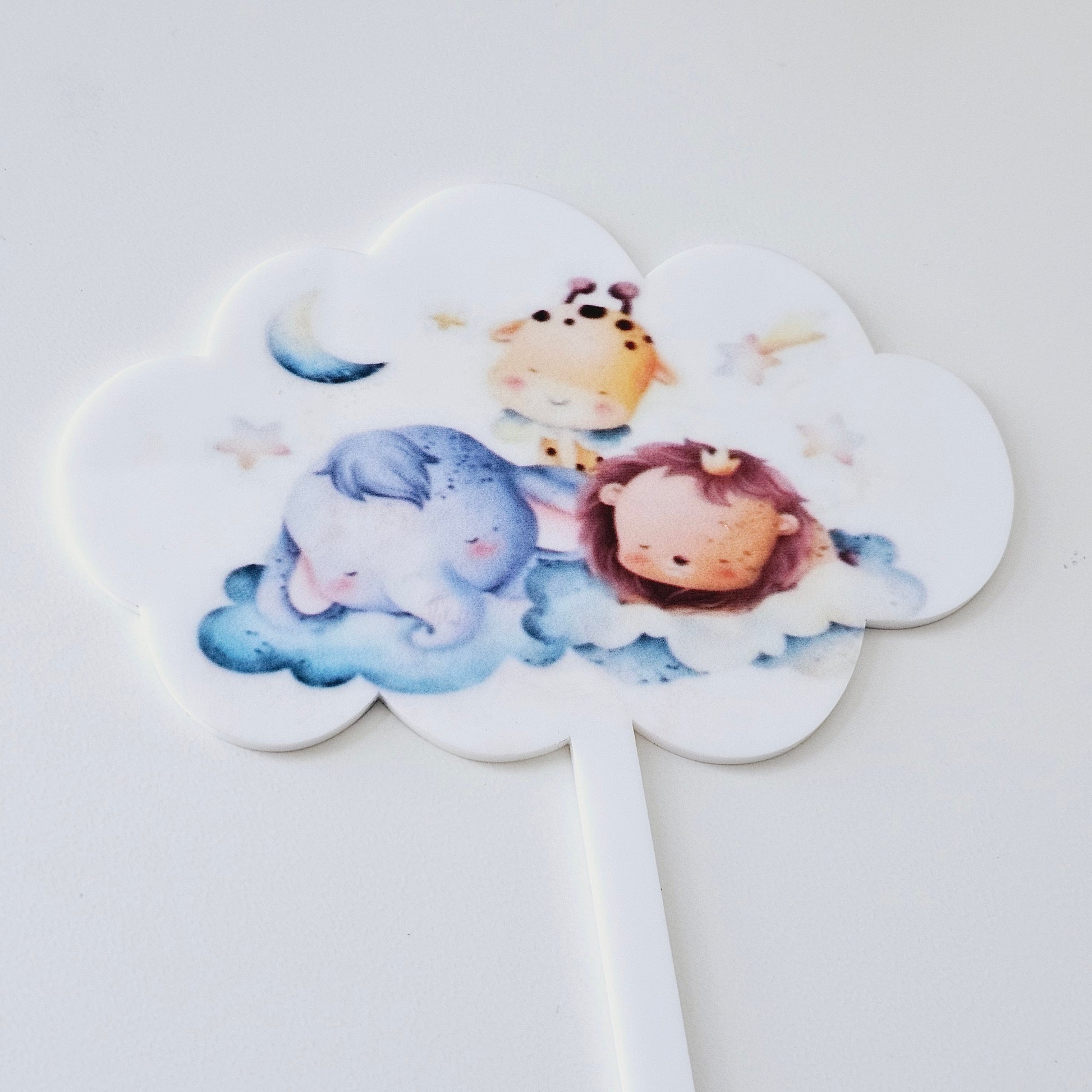 Enhance your cakes with our durable Cloud Cake Topper. Made from 3mm acrylic, it features a UV printed design that will add a touch of elegance to any celebration. Elevate your baking game with our professional-grade cake topper.