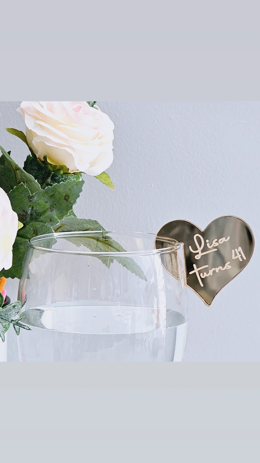 This custom heart shaped mirror acrylic drink charm/tag is the perfect accessory for any romantic occasion. Whether it's for Valentine's Day or a wedding, this charm adds a touch of elegance to any drink. Made with high-quality materials, it's sure to impress.